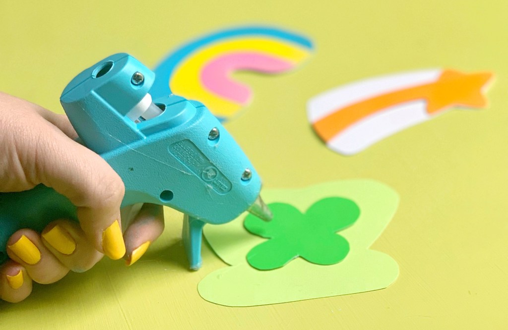 Rather than just covering the entire cake with the marshmallows, I thought it would be cute to make my own topper inspired by the shapes! I picked my three favorite shapes to top the cake, and I love how it turned out! I love making cake toppers!! Is there a career in that?! Sign me up!