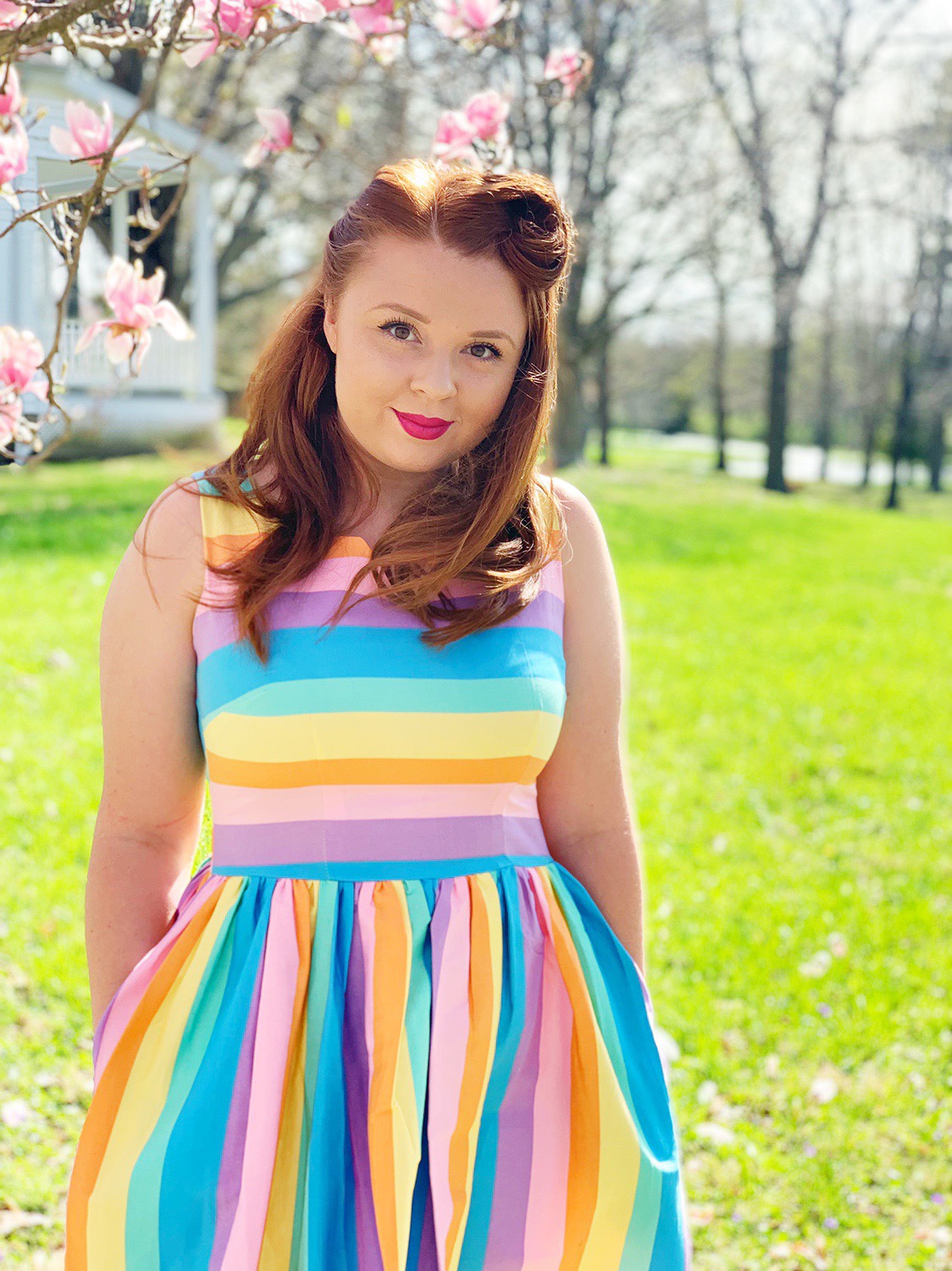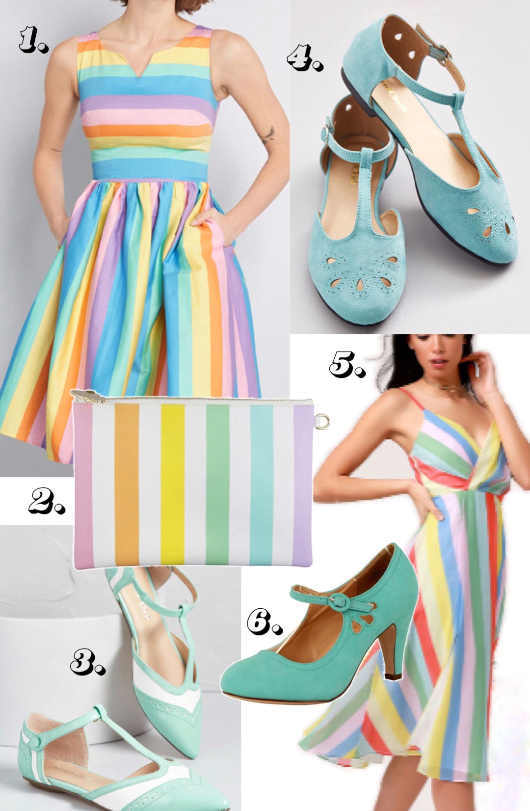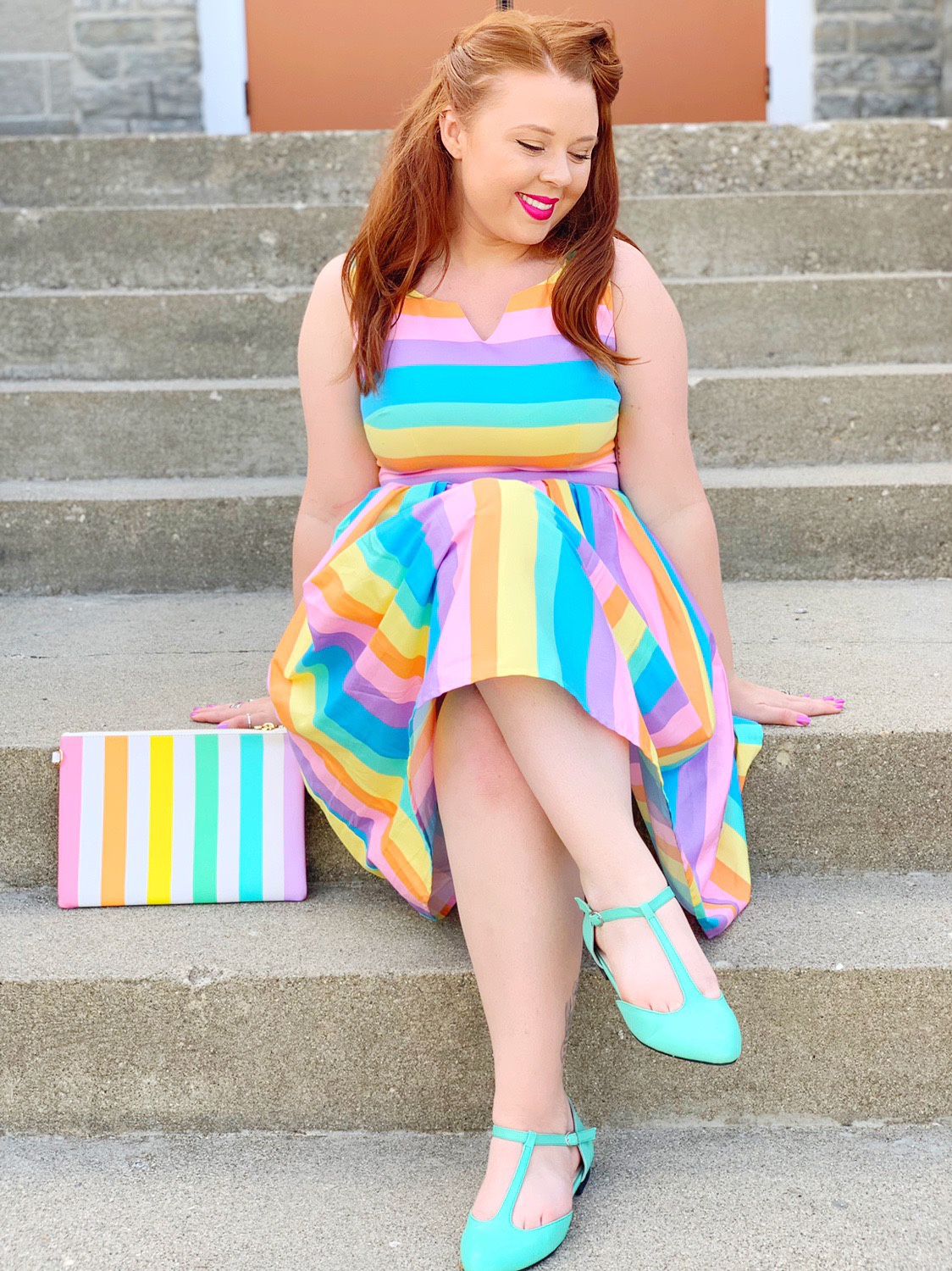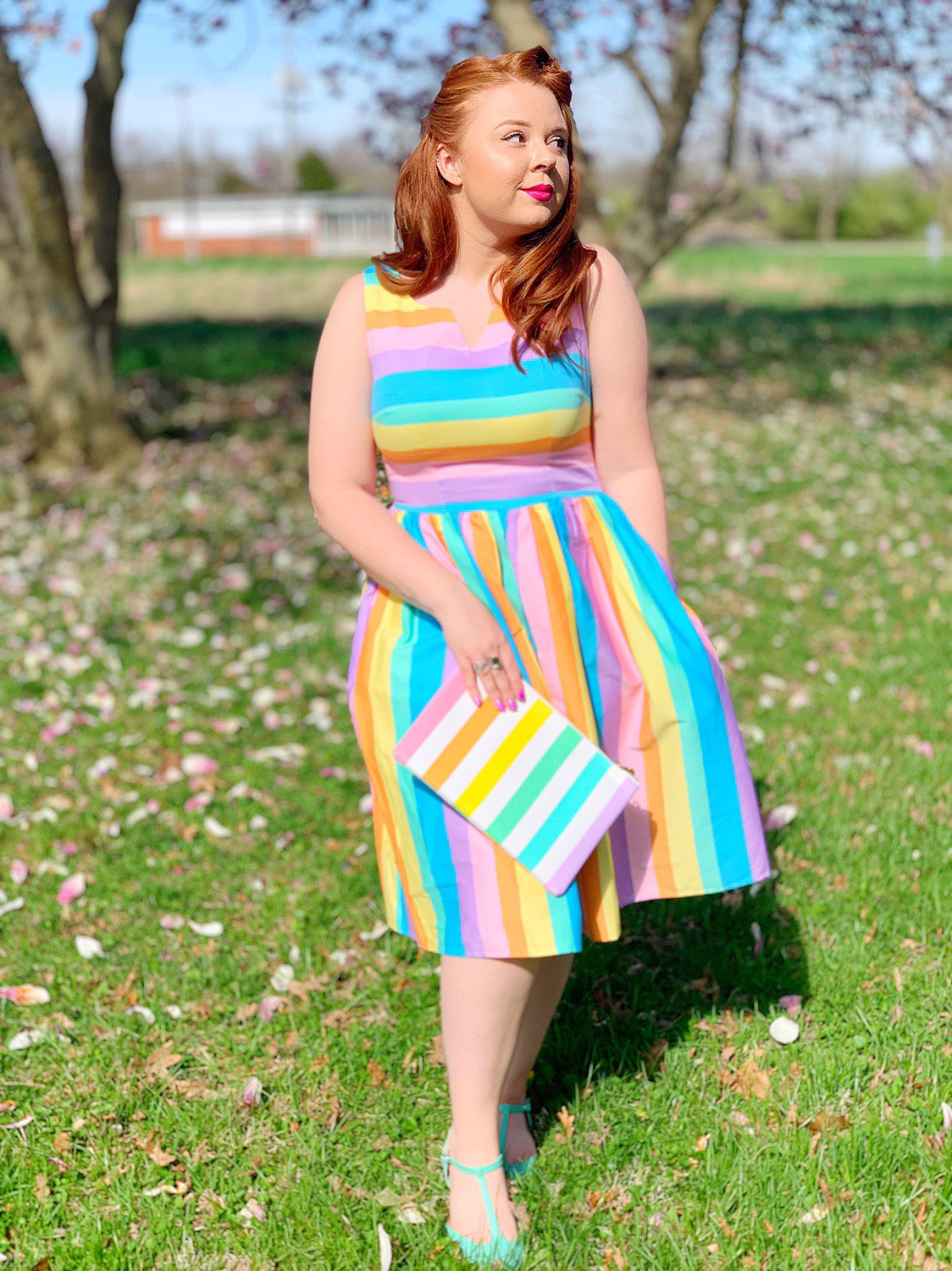 I must admit, this is probably my favorite Fashion Friday to date! Rainbow dress with matching clutch and major vintage vibes? Yes please! Do I ever have to take this dress off?!