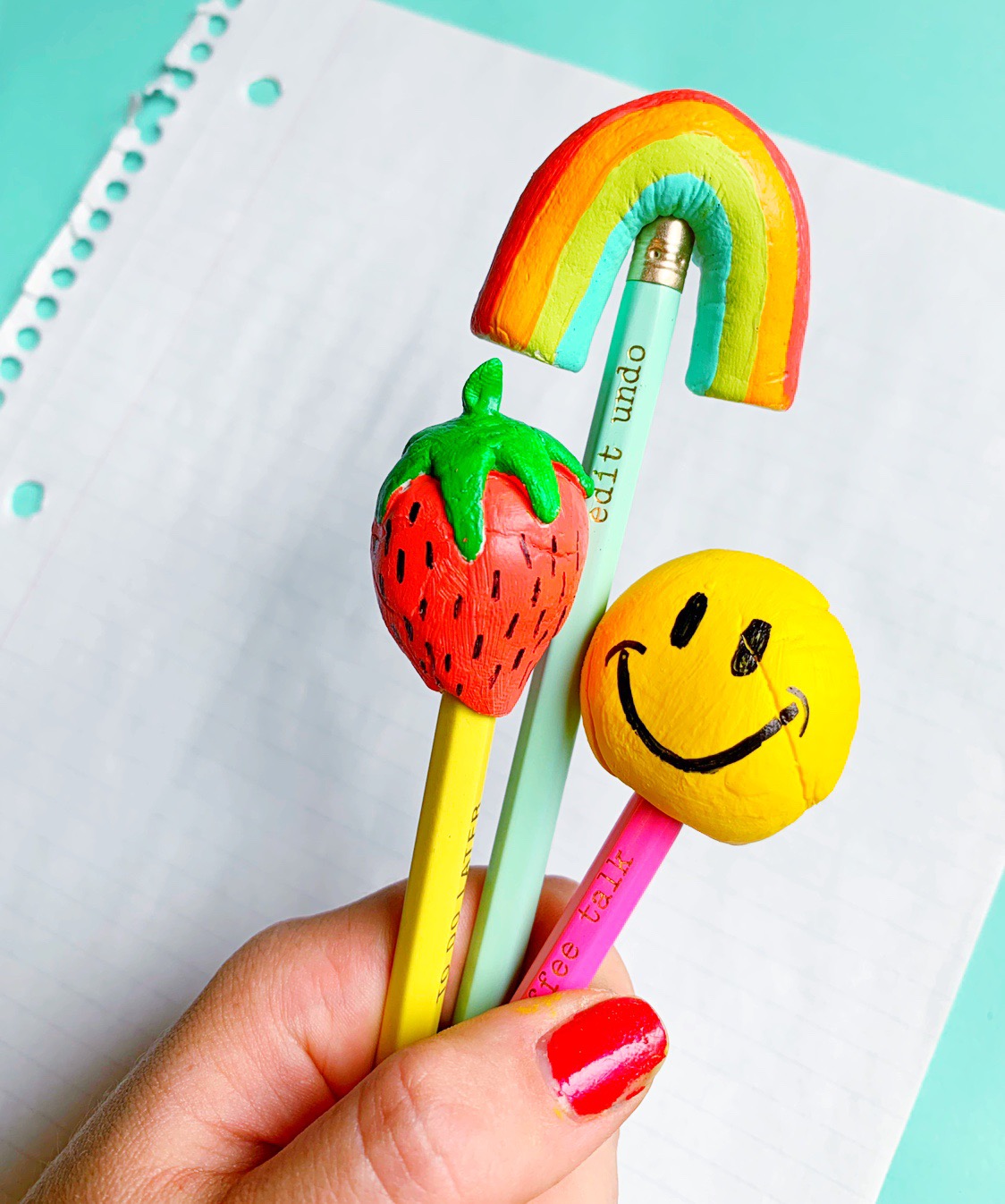 Pencil toppers were always one of my favorite back to school supplies because they added a little bit of personality to what is normally just a boring old pencil! The beauty about these pencil toppers is that you can make them into whatever makes you happy! Love rainbows, unicorns and cats? Make them into toppers! They are so easy to pop on and off of whichever pencil you like, and incredibly awesome to share with friends! Read below how to make your own!
