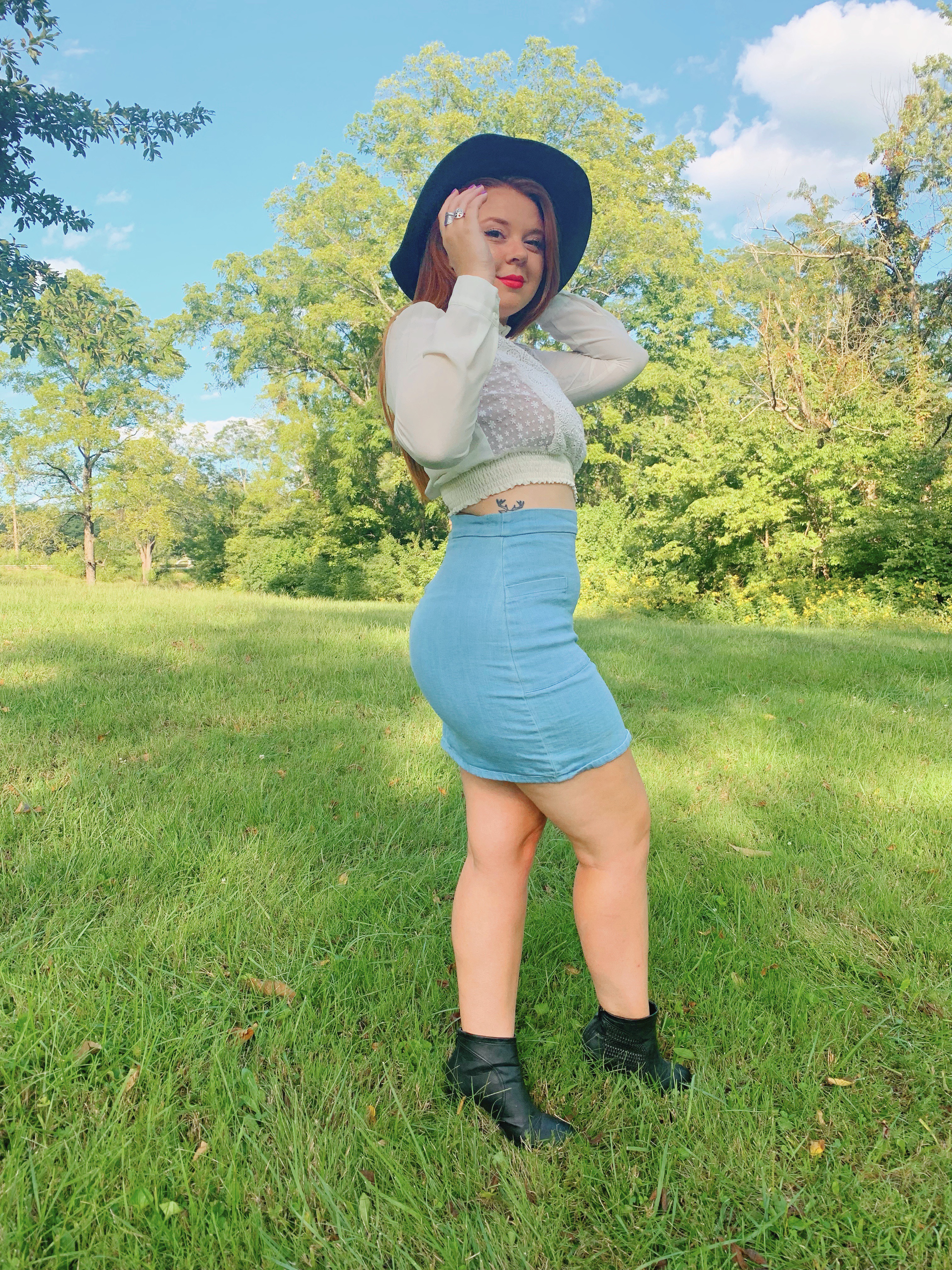 For the second look, I wanted to go a little more retro, and a little more sassy! The teal panama hat and black booties bring a little bit of edgy vibes to the otherwise feminine top and skirt combo. This look would be perfect for a night out with your girls!