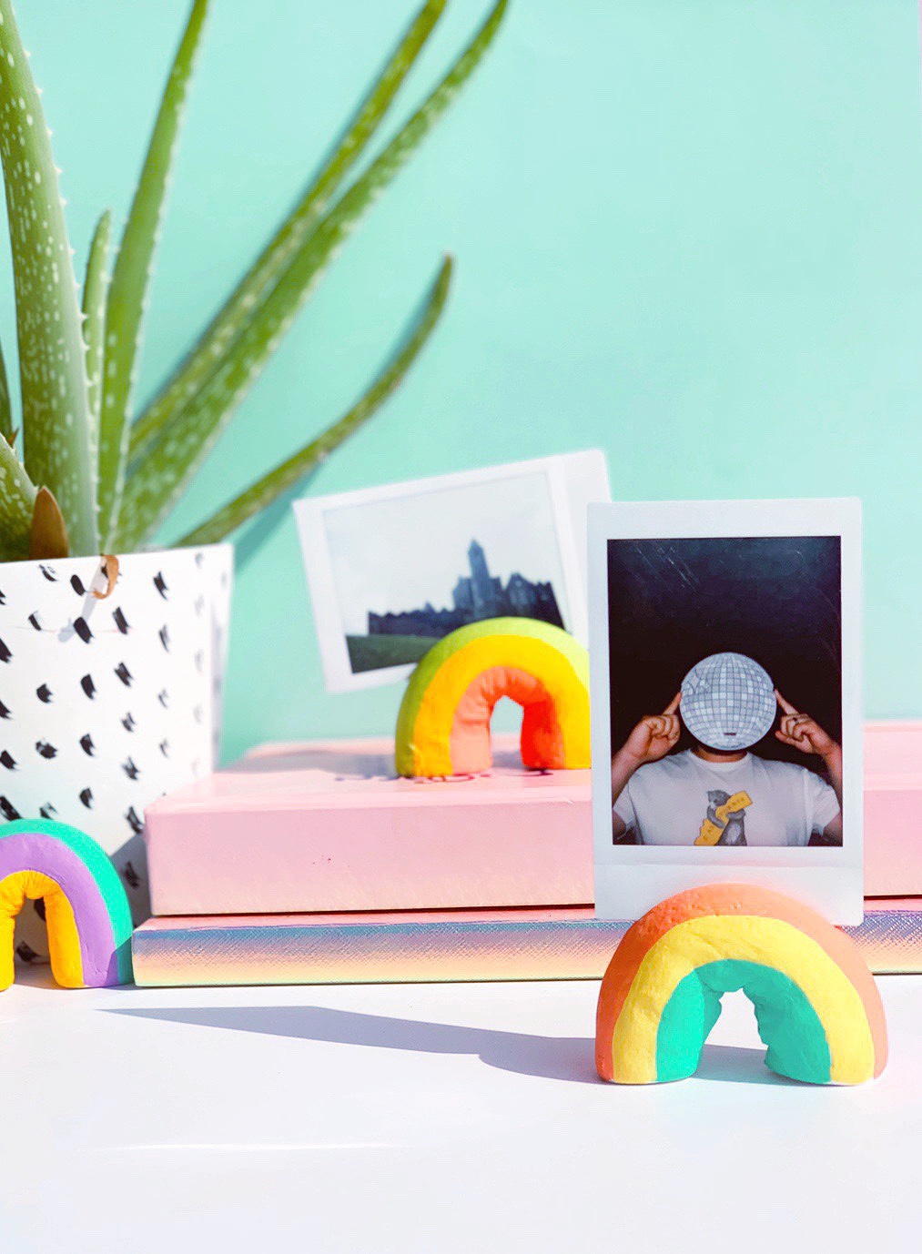 In this day and age we are constantly taking photos of absolutely everything. I mean, it’s so easy when you have a camera with you at all times! And although I know I take pictures, I have noticed that I never really showcase my photos anywhere. Am I the only one?? What’s the point of taking pictures if you don’t want to see them?! This realization inspired my DIY today! I am going to show you how to make your very own Rainbow Photo Holders so that you can show off all your favorite memories in a fun, colorful way!