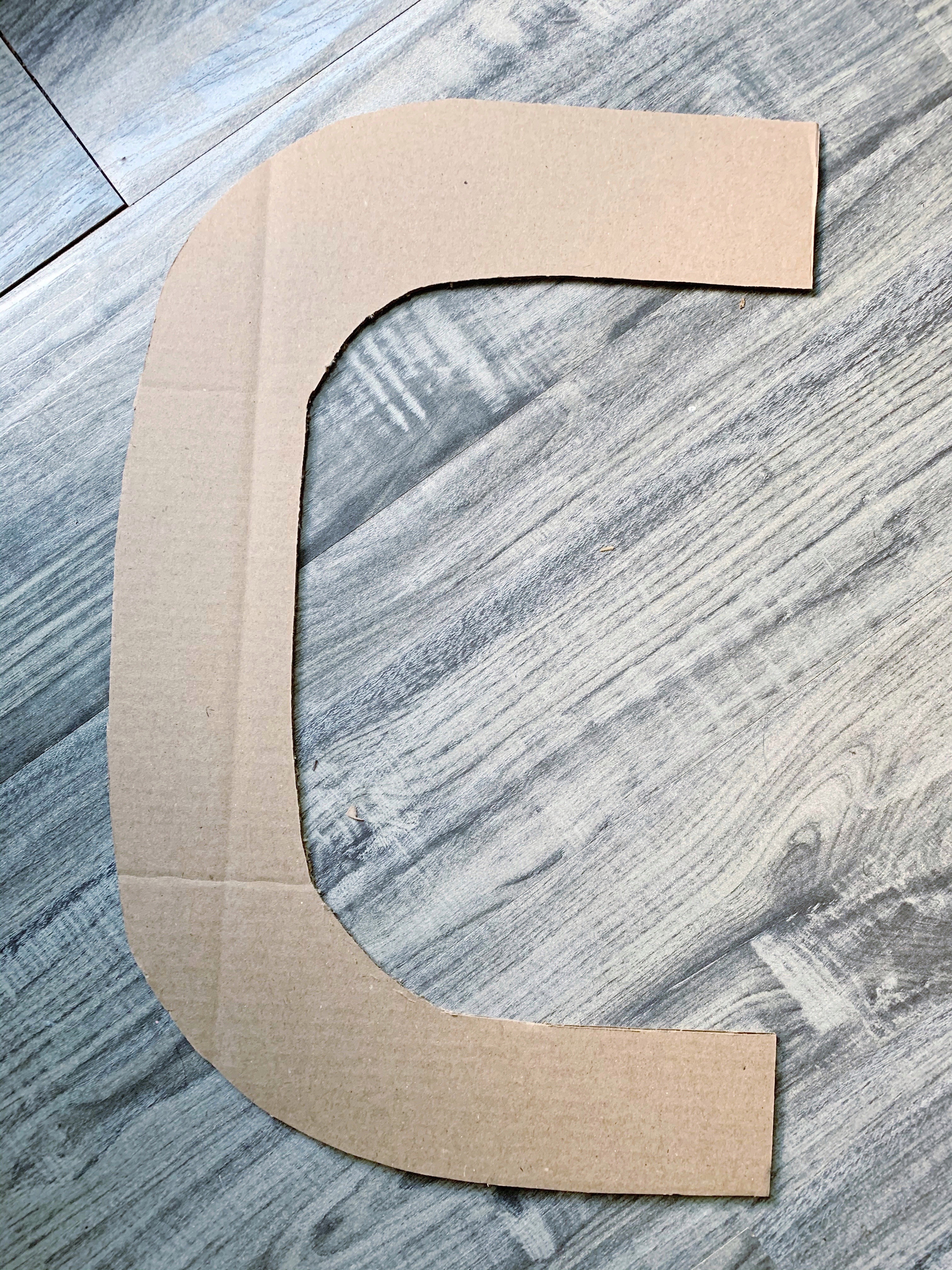 4.)For the handle, cut out a C-shape from your cardboard/foam board. If you opted for white foam board, you are finished with the handle! If you used cardboard like I did, just make sure to paint both sides white after cutting. Allow to dry completely.