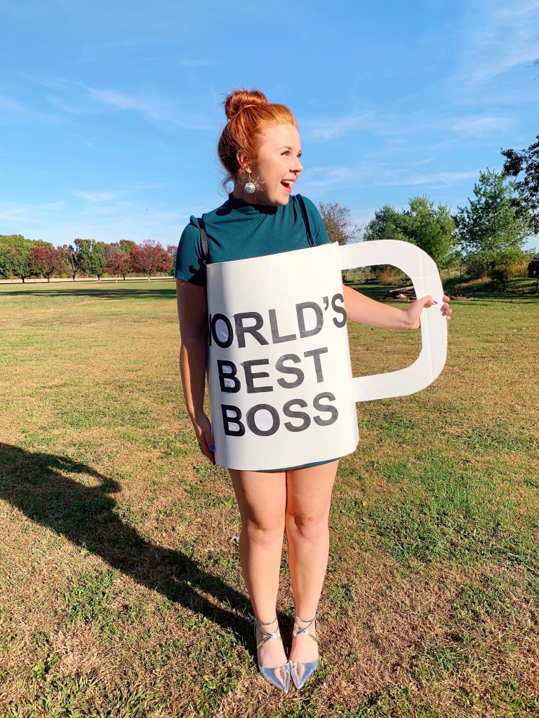 For all my The Office fanatics, now you can have your very own “World’s Best Boss” mug! And it’s a costume?! Michael Scott ain’t got nothin’ on you! This costume is soooo simple and honestly took me only about 30 mins altogether (aside from paint dry-time). Check out how to make this super easy, super cute costume for yourself!