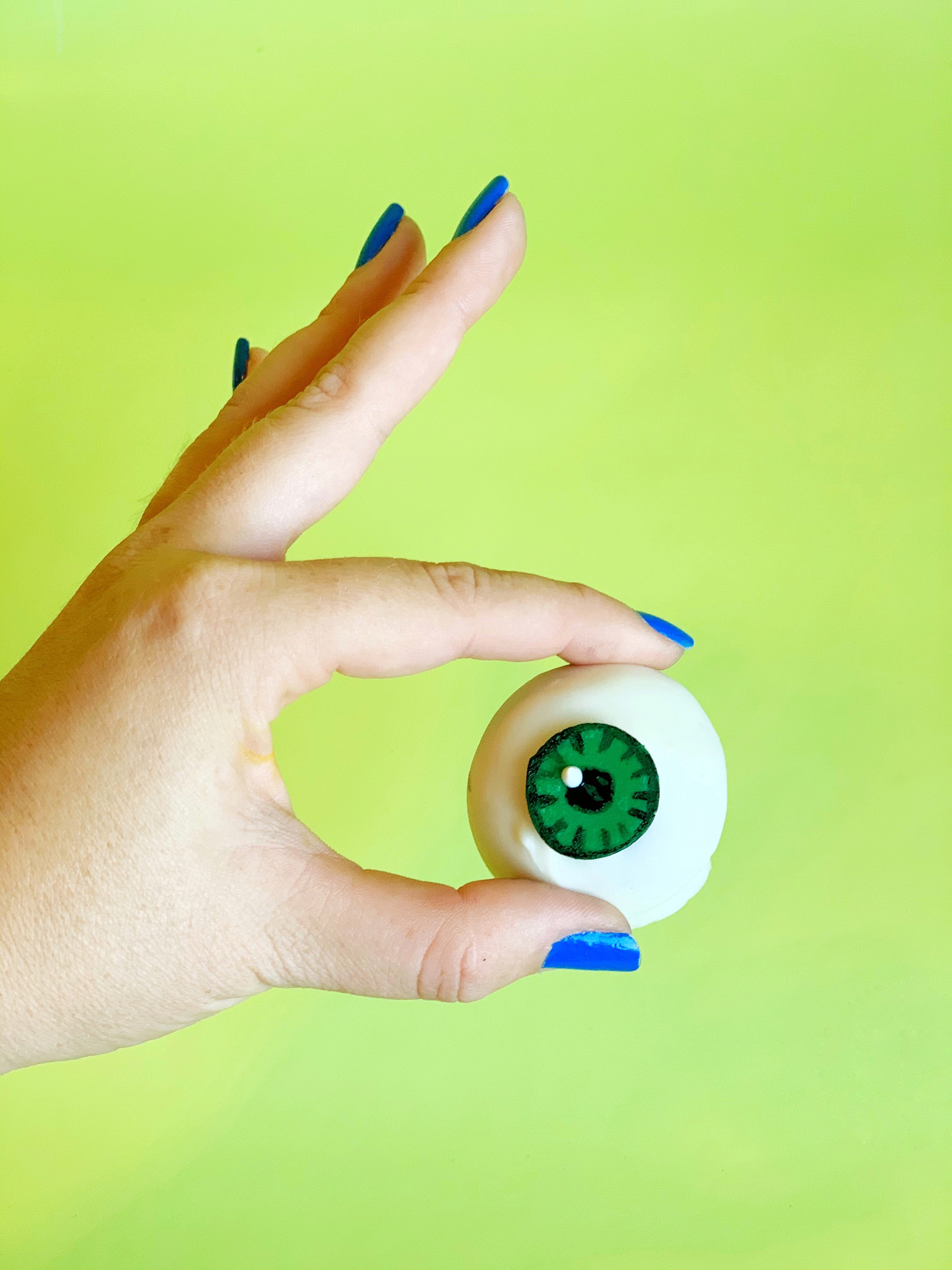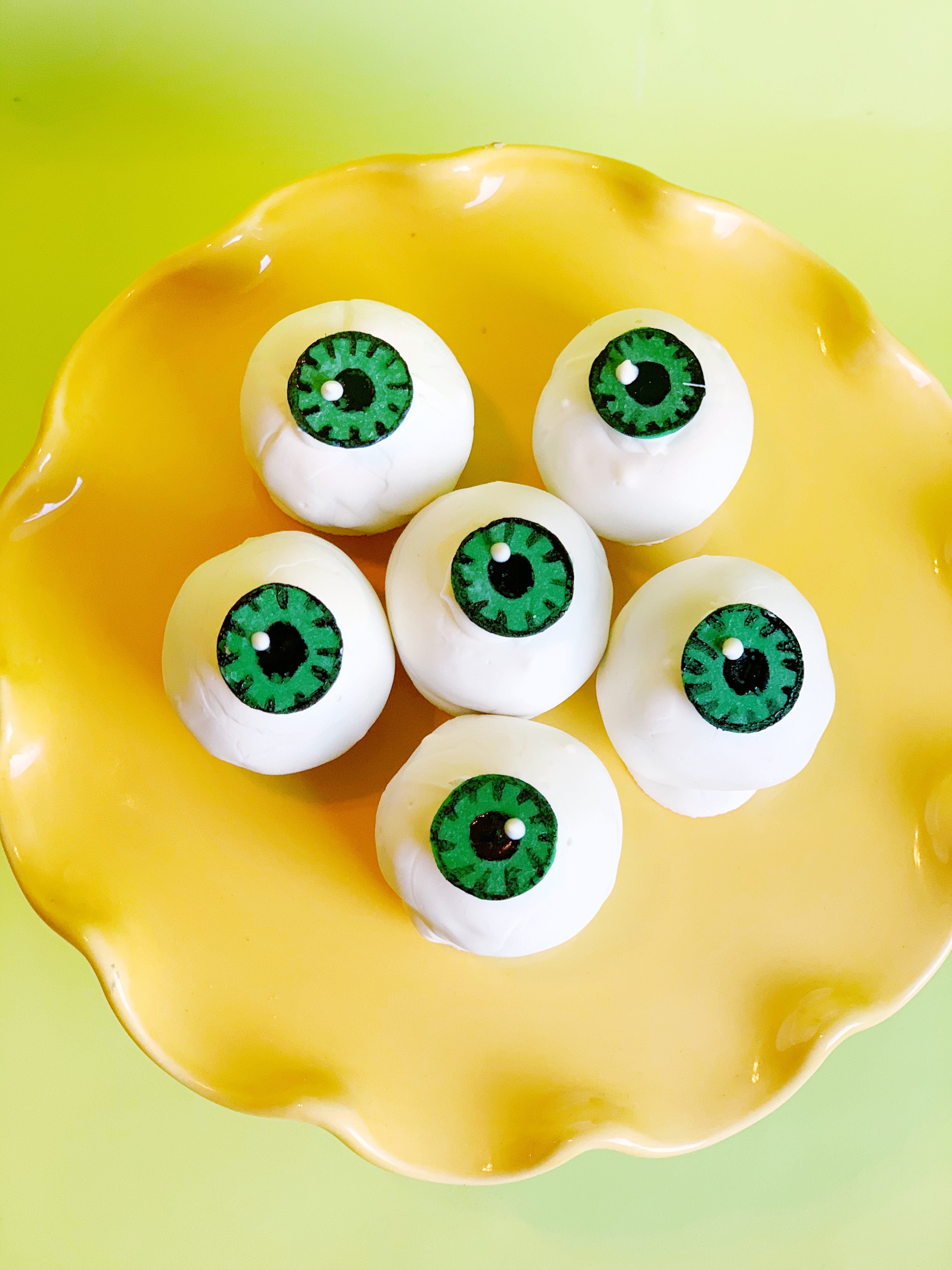 I am not a huge “gory-Halloween” type of person, I like more of the cutesy stuff. So, these are just plain eyeballs, but if you do like the gore feel free to add a little red icing as veins or as blood!