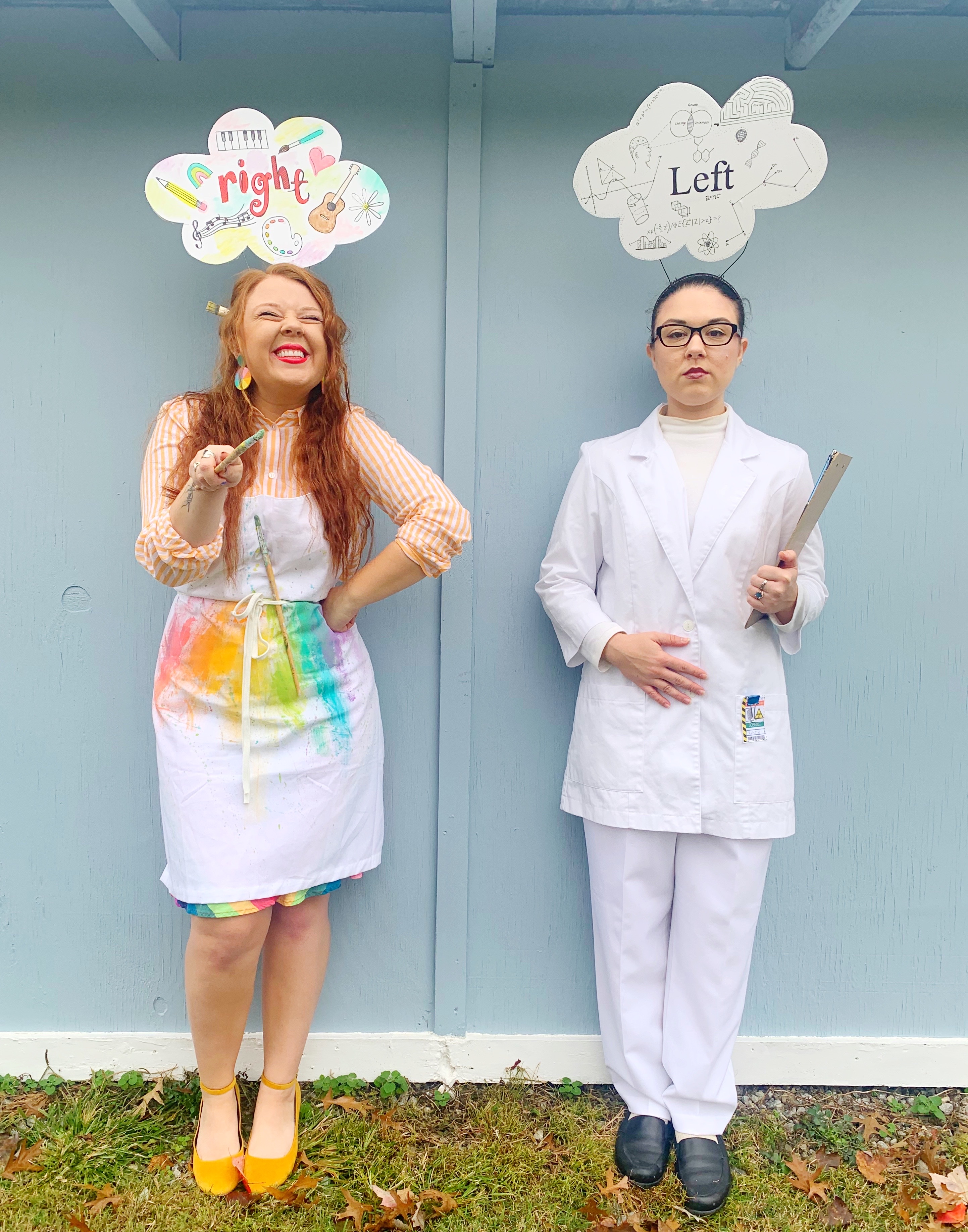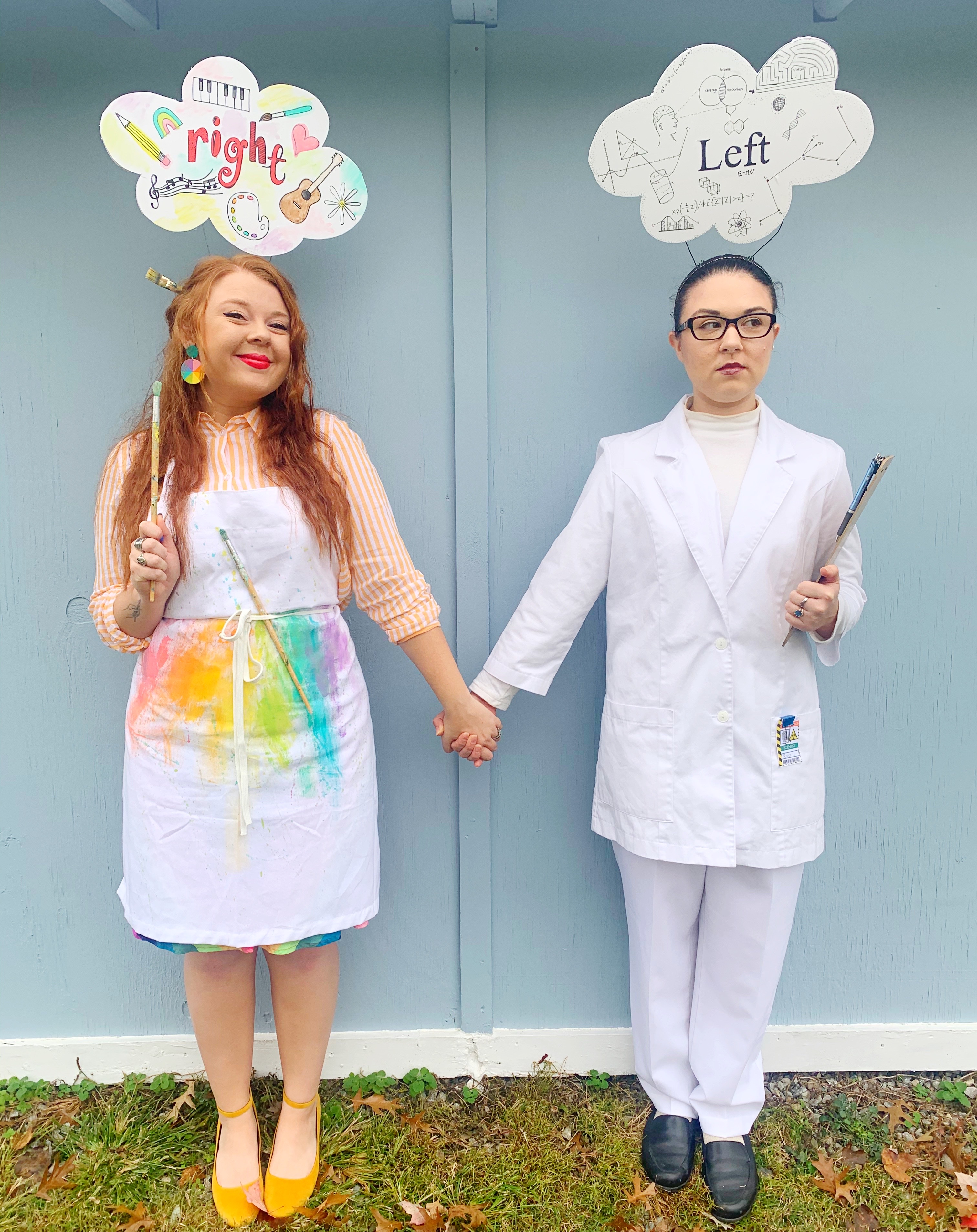 Just like everyone else, we both have left and right brain tendencies, but my sister is more left-brain oriented, and I am a little more right-brained, so I thought this costume idea would be perfect for us!