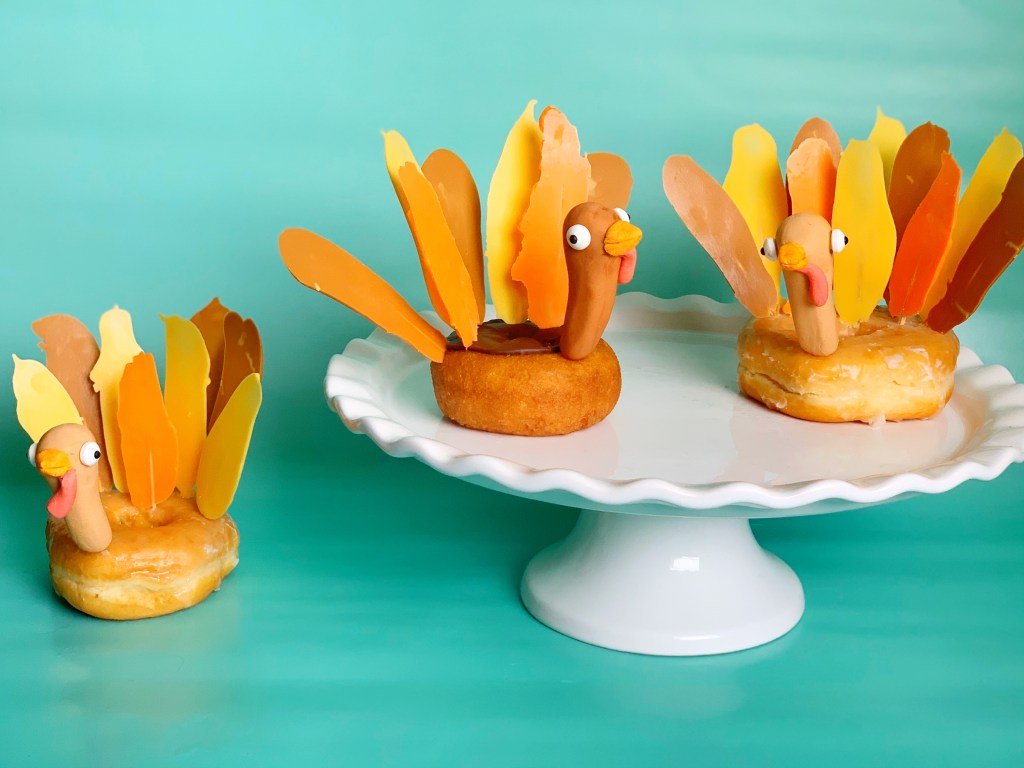 We all know that Thanksgiving dinner is the most special, most celebrated dinner of the whole year. (in the U.S.) But you know what the most underrated part about Thanksgiving is? Breakfast! Yeah, you may want to save some room for all the food at your Thanksgiving feast, but you’ve got to eat something beforehand! And why eat something boring when you can eat something fun AND festive?! These adorable little Turkey Donuts are perfect for your Thanksgiving morning!