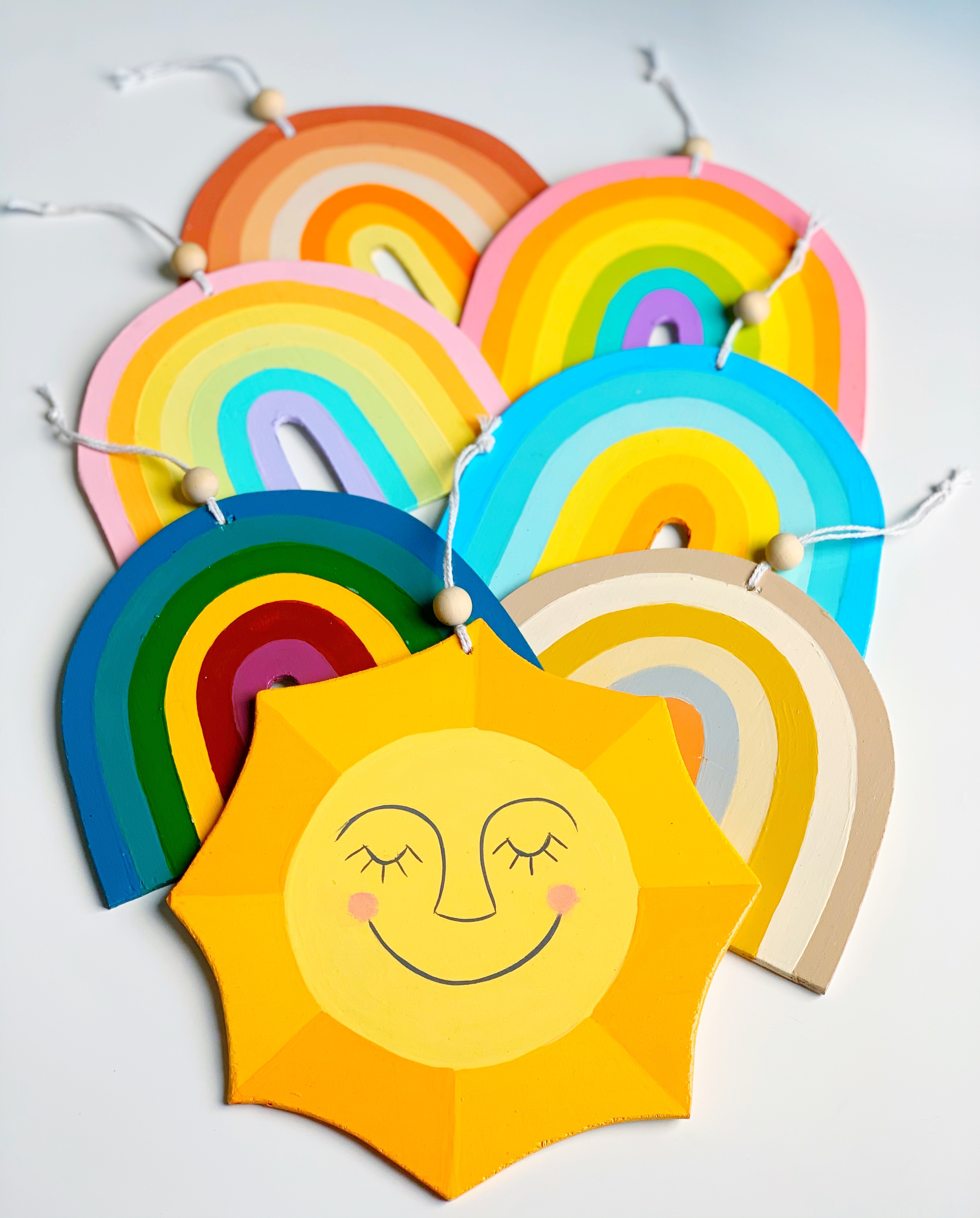 I first had the idea to create these for adorable nursery décor, and while they are perfect for that, I thought, why do babies get to have all the cool stuff?! Haha! These rainbow wall hangings are perfect for your baby AND your home! In any room!!! I have them scattered all over my bedroom in my home! They just make me so happy!!!