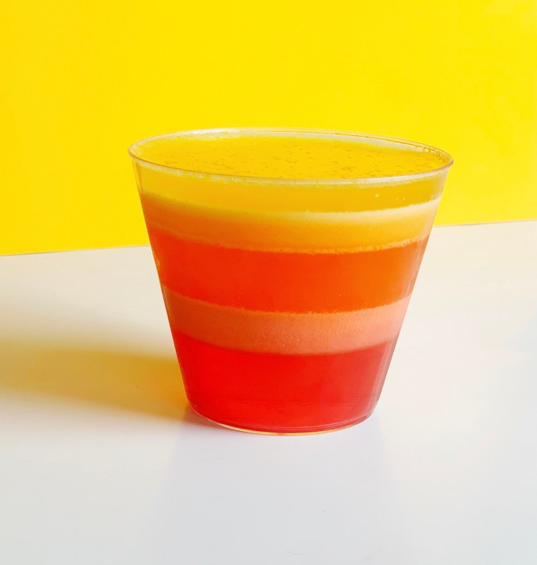 3.) Repeat steps 1 and 2 for your orange jell-o. Always allow time in between layers for jell-o to fully solidify or the mixture will combine with the previous layer.