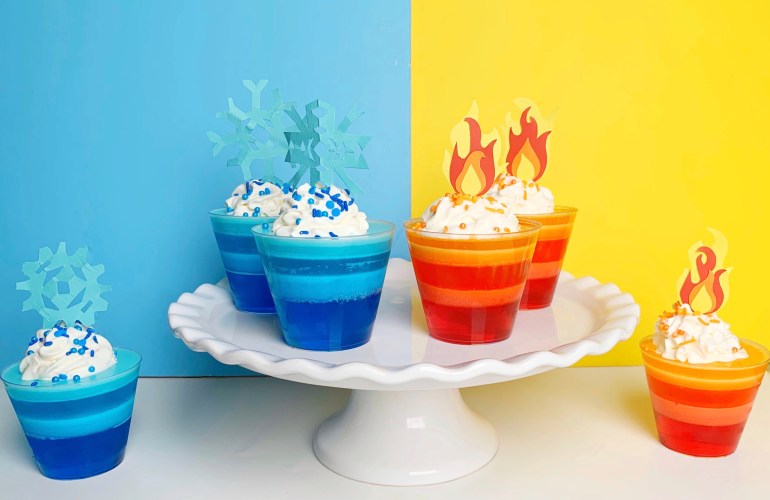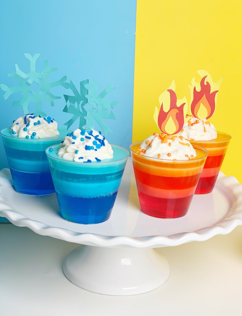 I don’t know about you, but my absolute favorite Christmas movie of all time has to be The Year Without Santa Claus! And what is that movie without Heat Miser and Snow Miser?! Those colorful characters inspired these colorful jell-o cups!