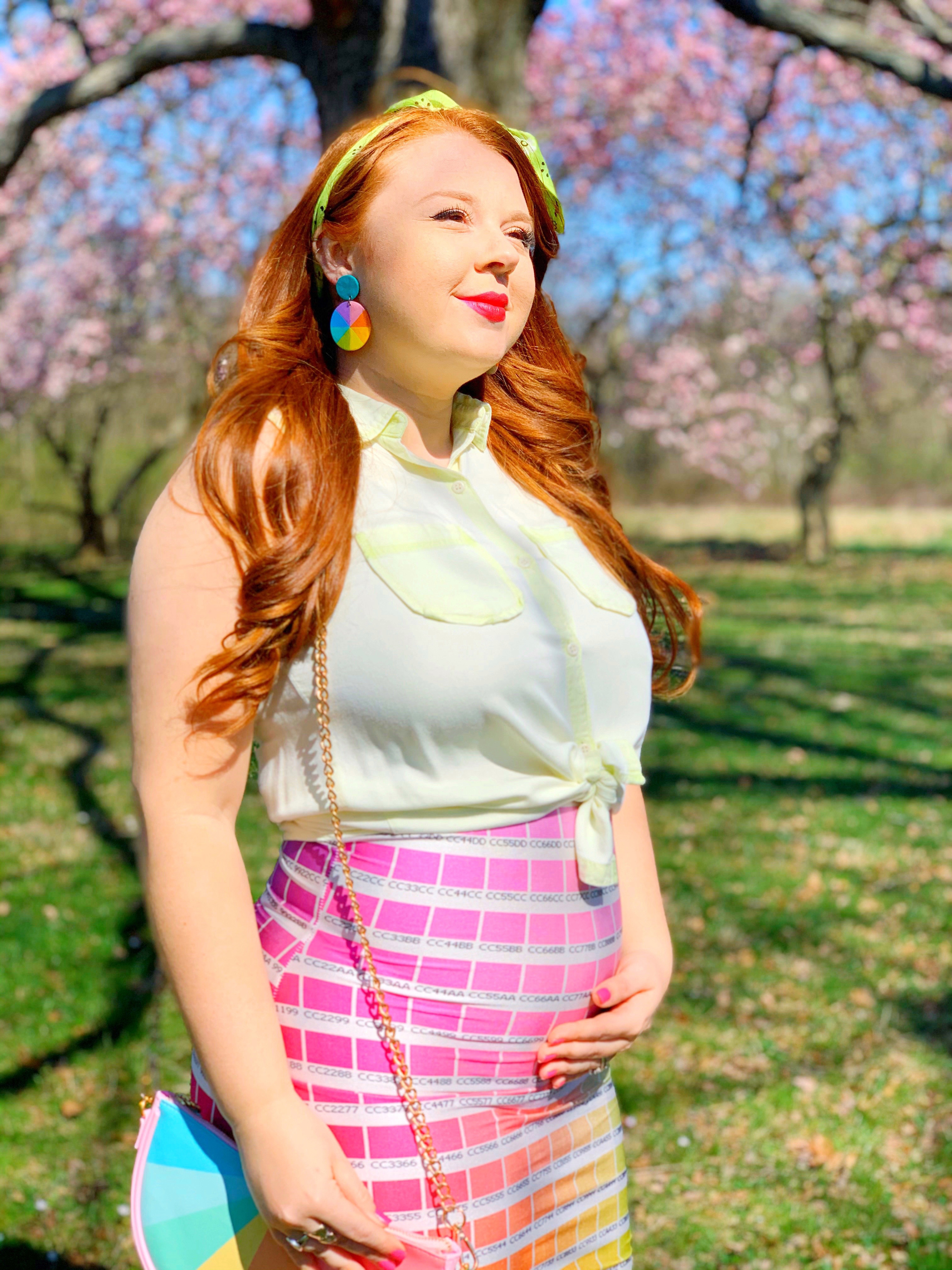 Just because I am 5 months pregnant, does not mean I have to dress like it! This weeks Fashion Friday is focused on lots of color! I mean, my bag is literally half the color wheel! Haha
