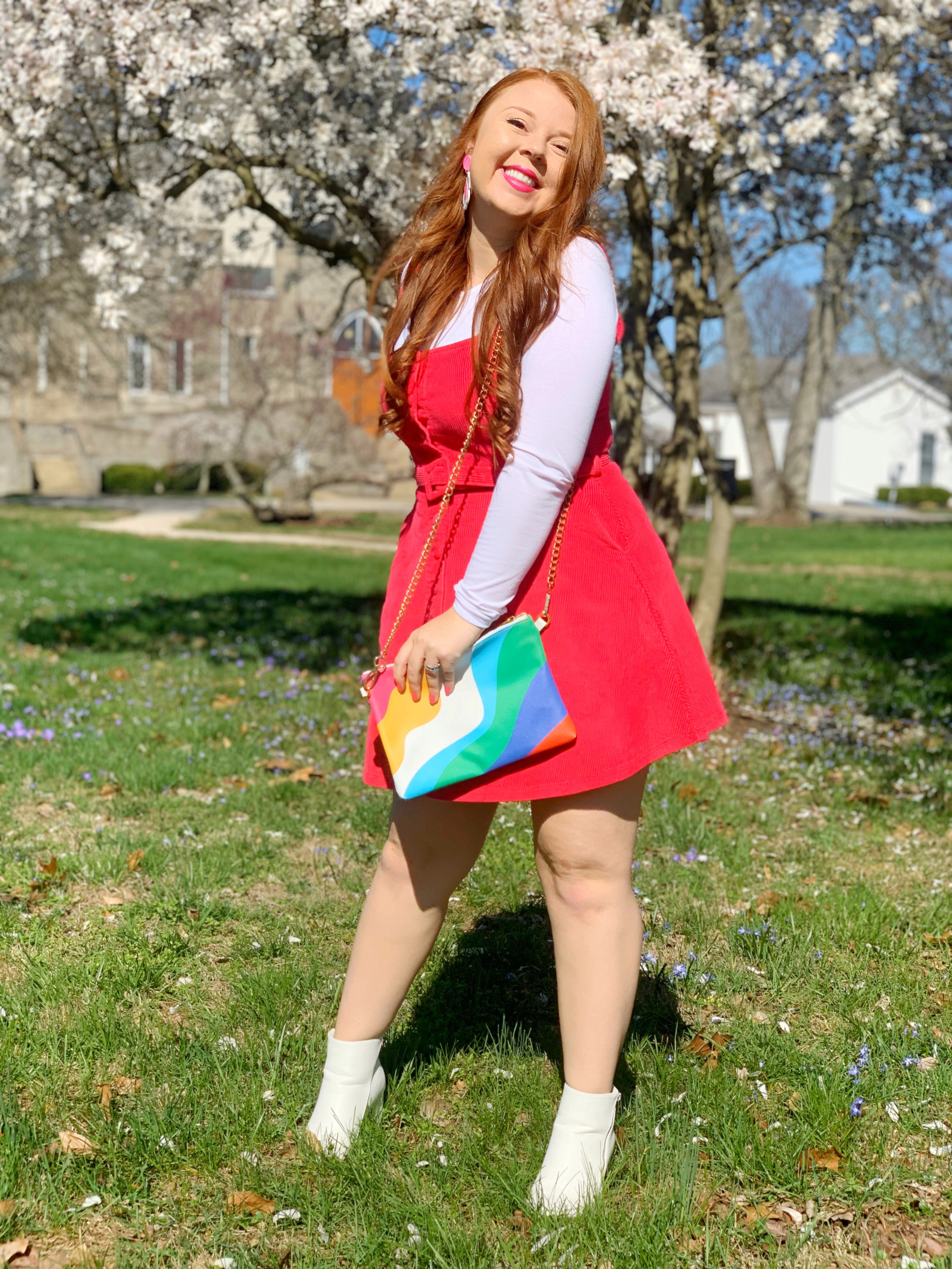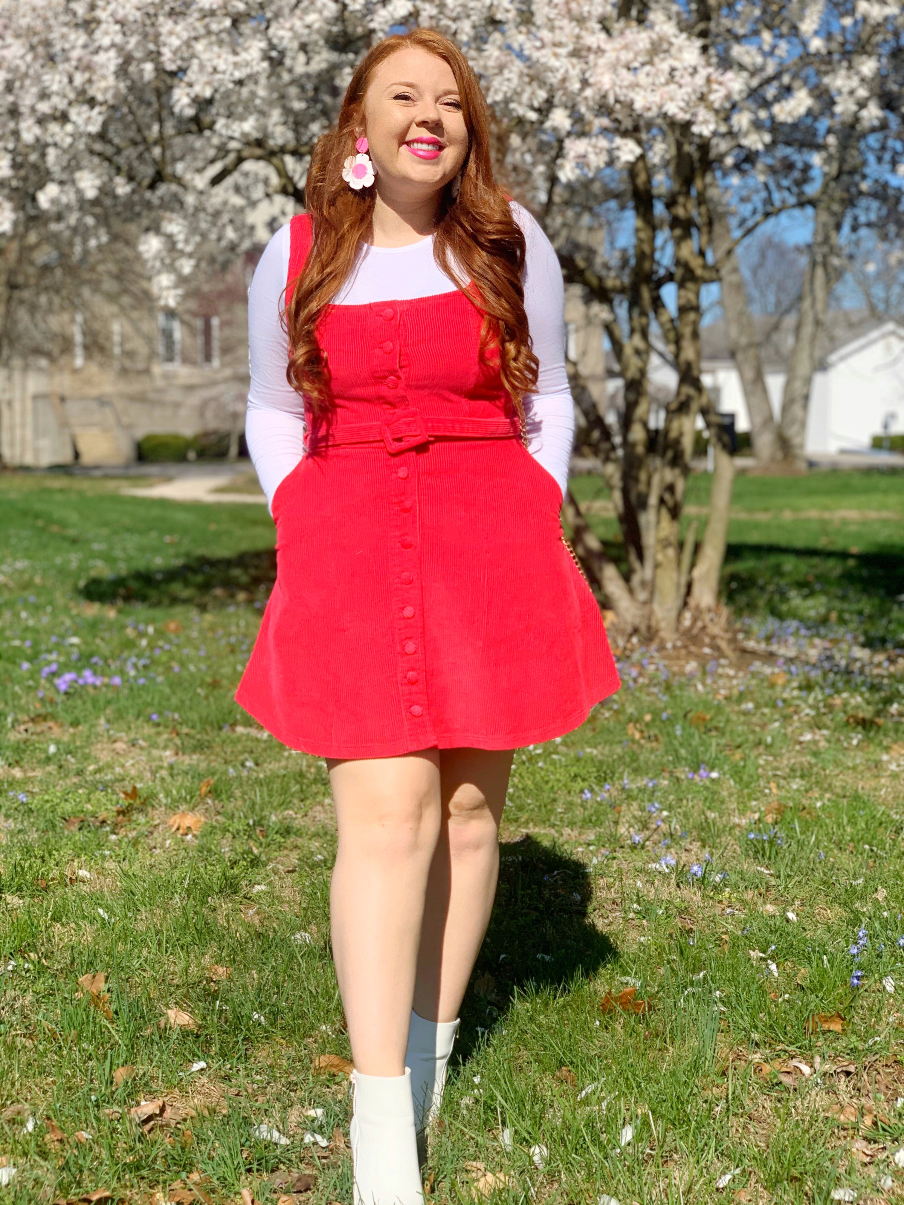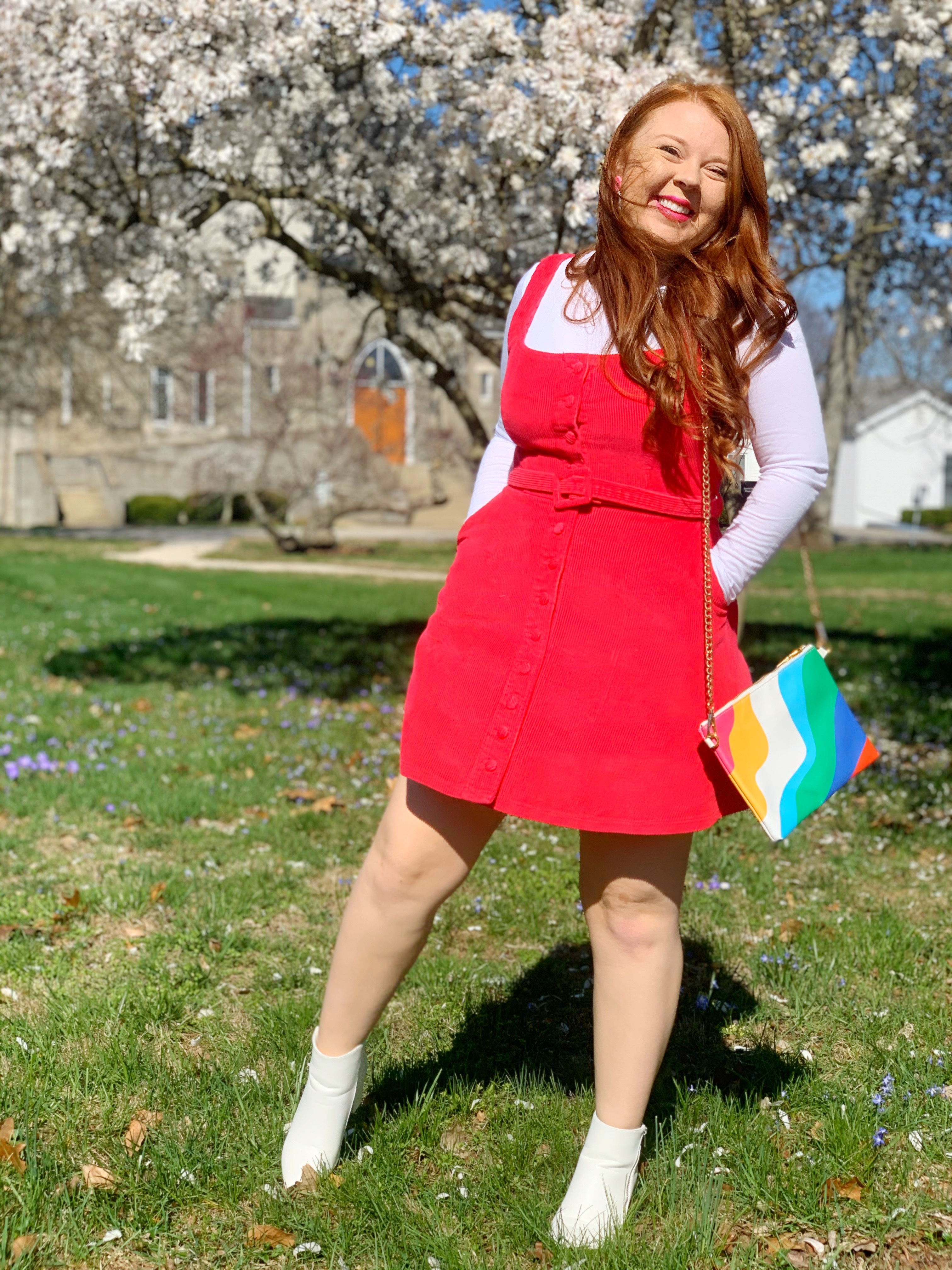 The older I get, the more I fall in love with clothing trends from past decades! The 1960’s (to me) is the pinnacle for style! All the patterns, the silhouettes, the color?! Ughhhh it makes me swoon! As soon as I put on this cute little pinafore dress, I got all the 60’s vibes!!! So that’s how I decided to style it!