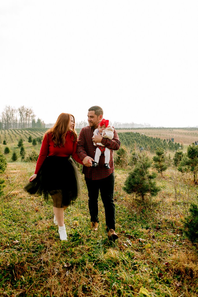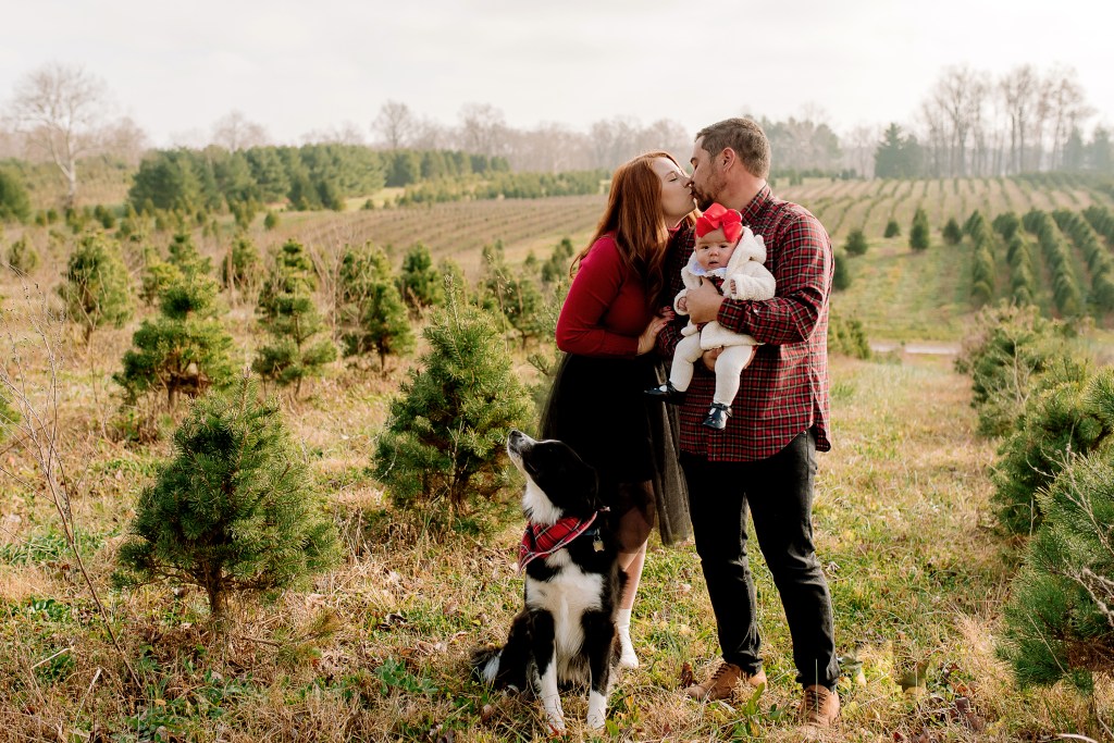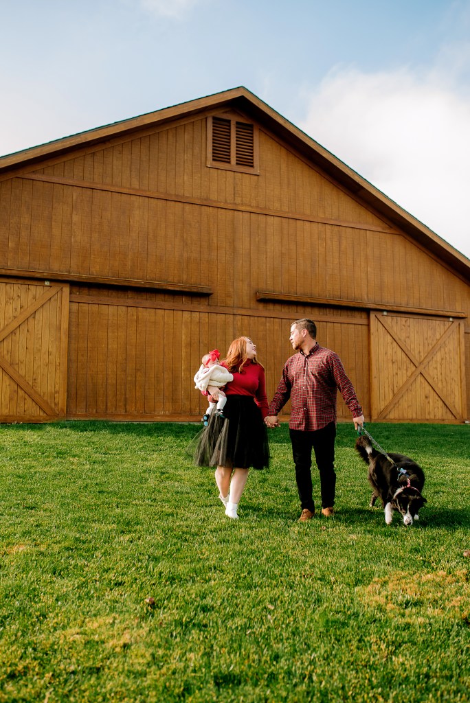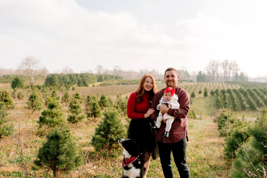 This past Saturday the Kirchner clan went to Corsi Tree farm to get some portraits for our first Christmas card EVER! This is our first photoshoot as a family (unless you count when Scarlett was in my belly) and I could not love them more!! We really gave Tessah (our photographer) a run for her money! Scarlett spit up all over me within 2 minutes of being there, and Indigo kept running off and whining to go see the other doggos that were also at the tree farm! I honestly assumed we would have NO photos with everyone cooperating and I was pleasantly surprised to have SO MANY great photos! It made it sooo difficult to pick out one for our Christmas card this year!