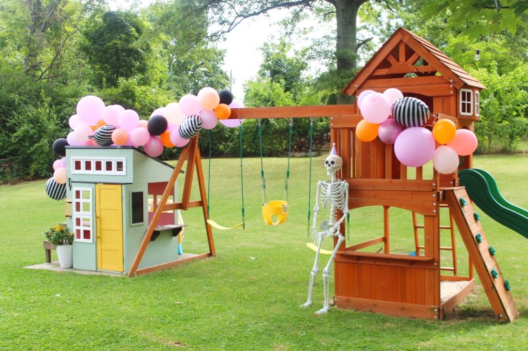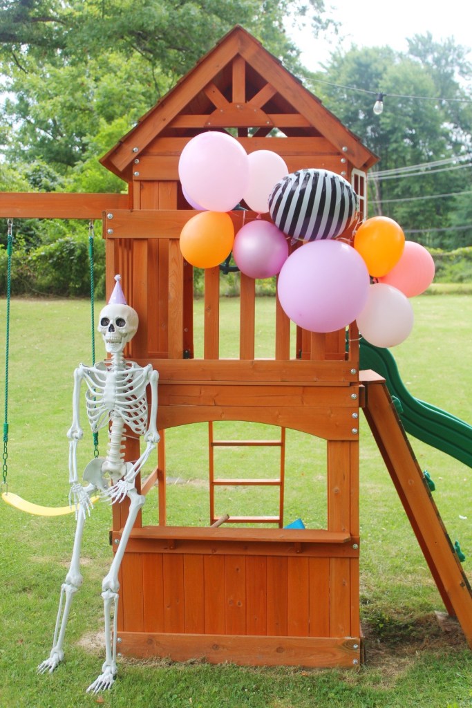 I decided to decorate the playhouse and playset for her party this year and I will be doing this from now on! I absolutely loved it! With 3/4 of our family having summer birthdays, we have most of our parties in our backyard, and it was so fun to see the decor up while the kiddos played around the yard!