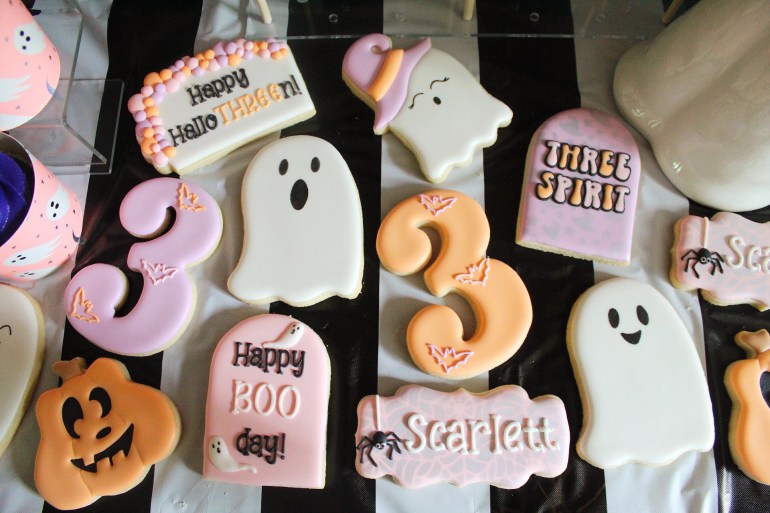 A Halloween themed birthday party is so unique, and definitely something she is going to laugh about (in the best way) when she is older! And be so amazed at all the decor, food and costumes too 😍 I particularly am in love with those napkin, but the balloons and those gorgeous and delicious-looking cookies also instantly caught my eye 🙌 So jealous I didn’t get parties like these growing up!