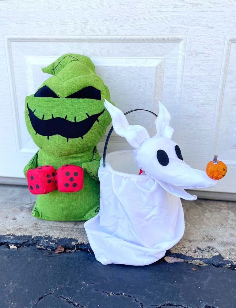 I mentioned that I made the Zero candy bucket, but we were gifted the Oogie Boogie stuffy from a family friend a couple years ago! It ended up being the perfect addition to this costume!