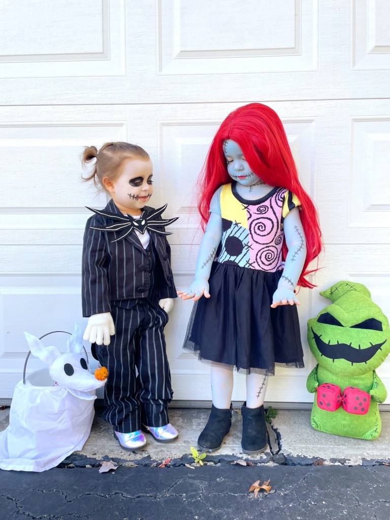 The Nightmare before Christmas has always been a family favorite! Scarlett fell in love with the movie when she was one, and has loved it ever since! So, I was incredibly excited when the girls said they wanted to be Jack and Sally this year for Halloween!