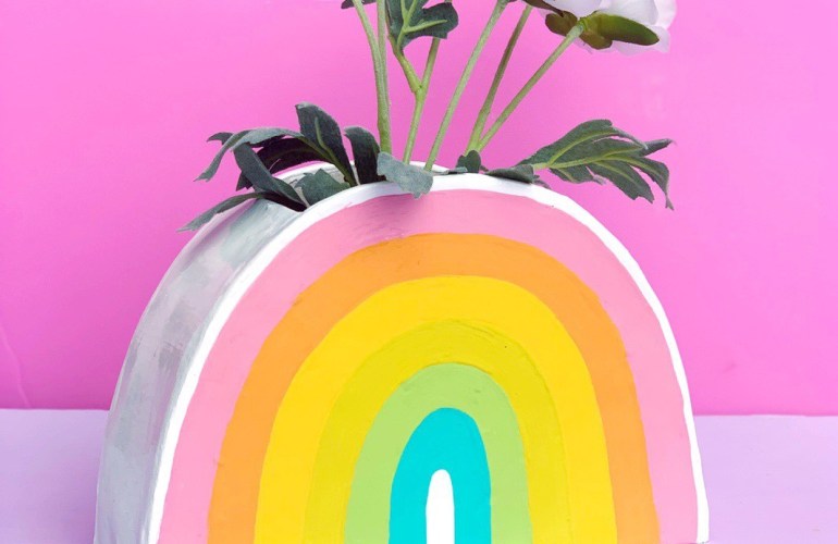 They say April showers brings May flowers and after every storm is a rainbow. So you know I had to combine both of those ideas for this DIY! And I mean, what a perfect gift for mom this Mother’s Day!! Ugh, I just love it so much!! Check out how to make your very own!