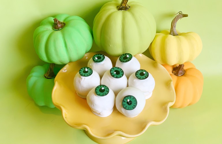 It’s spooky season, and what is spookier than eating eyeballs?!?! These eyeball cake balls are not just spooky, they are also adorable! And delicious!! Cause not only is it spooky season, it is also pumpkin spice season. So, you better believe these little babies are a perfect mix of spicy and sweet!