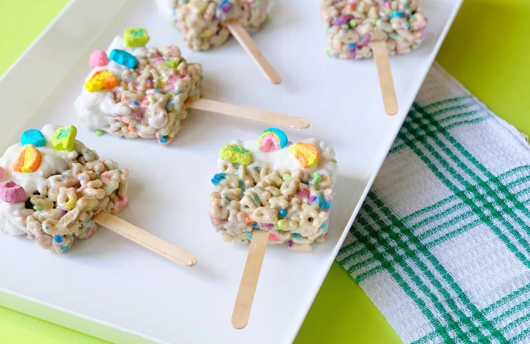 I don’t know about you, but when I think St. Patrick’s Day treats, I immediately think of Lucky Charms! And with St. Paddy’s Day right around the corner, I knew I HAD to make something fun!